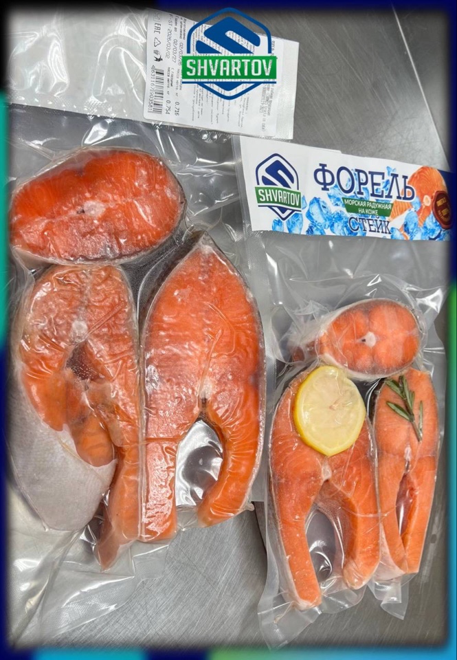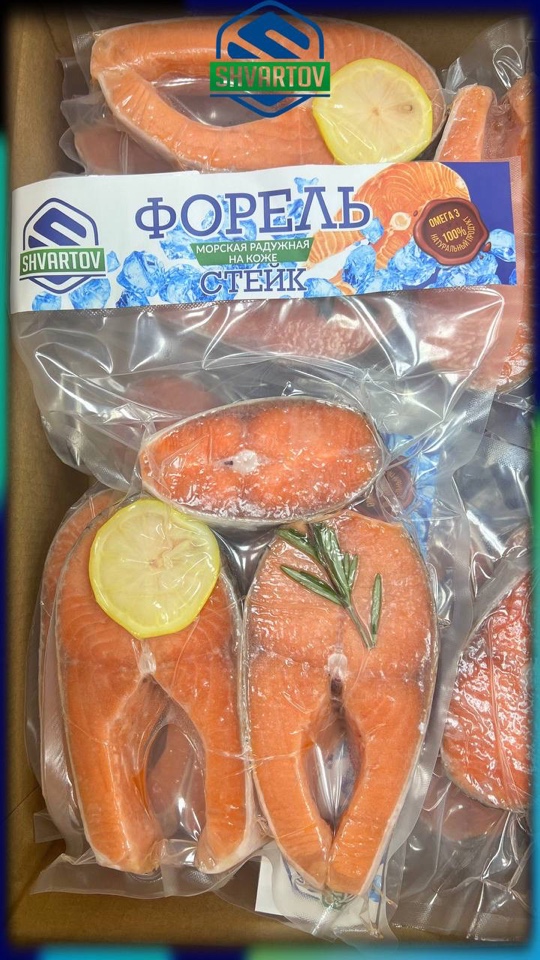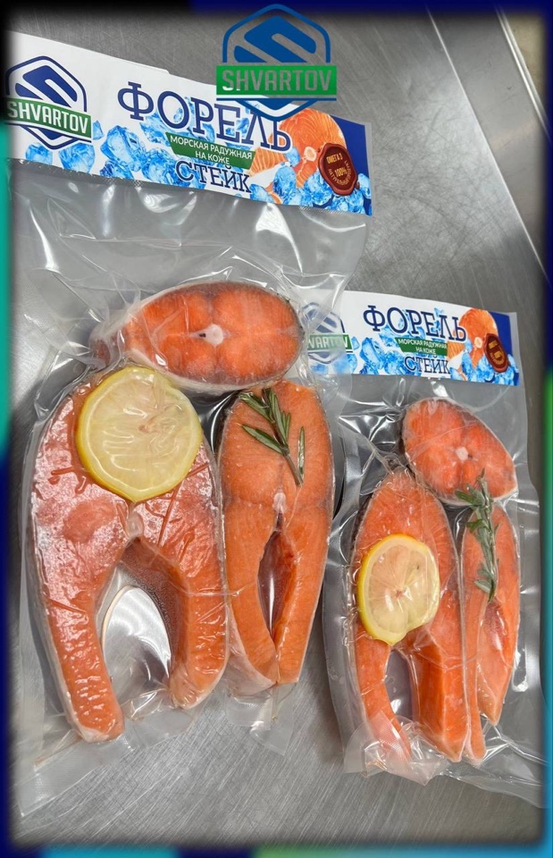 Форель радужная морская стейк на коже мороженый. Вакуум упаковка. ПРЕМИУМ !