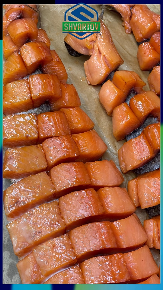 Лосось атлантический Сёмга холодного копчения филе пласт на коже. ЮКОЛА.