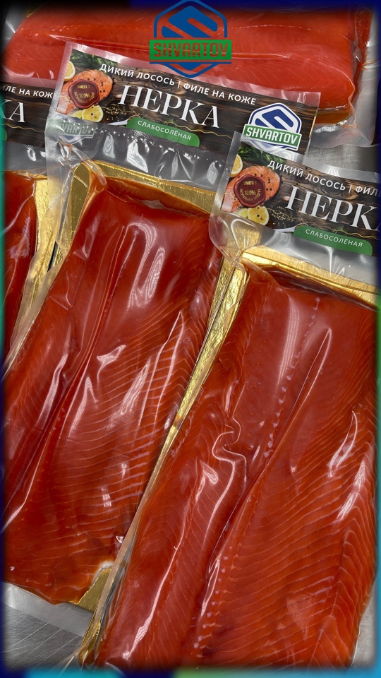 Нерка слабосолёная филе пласт на коже. В/У.