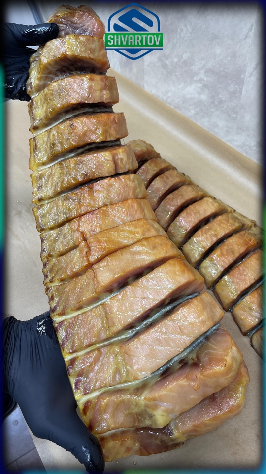 Осётр холодного копчения филе пласт. ЮКОЛА. Авторский посол. Авторское копчение. Слабой соли. ПРЕМИУМ !